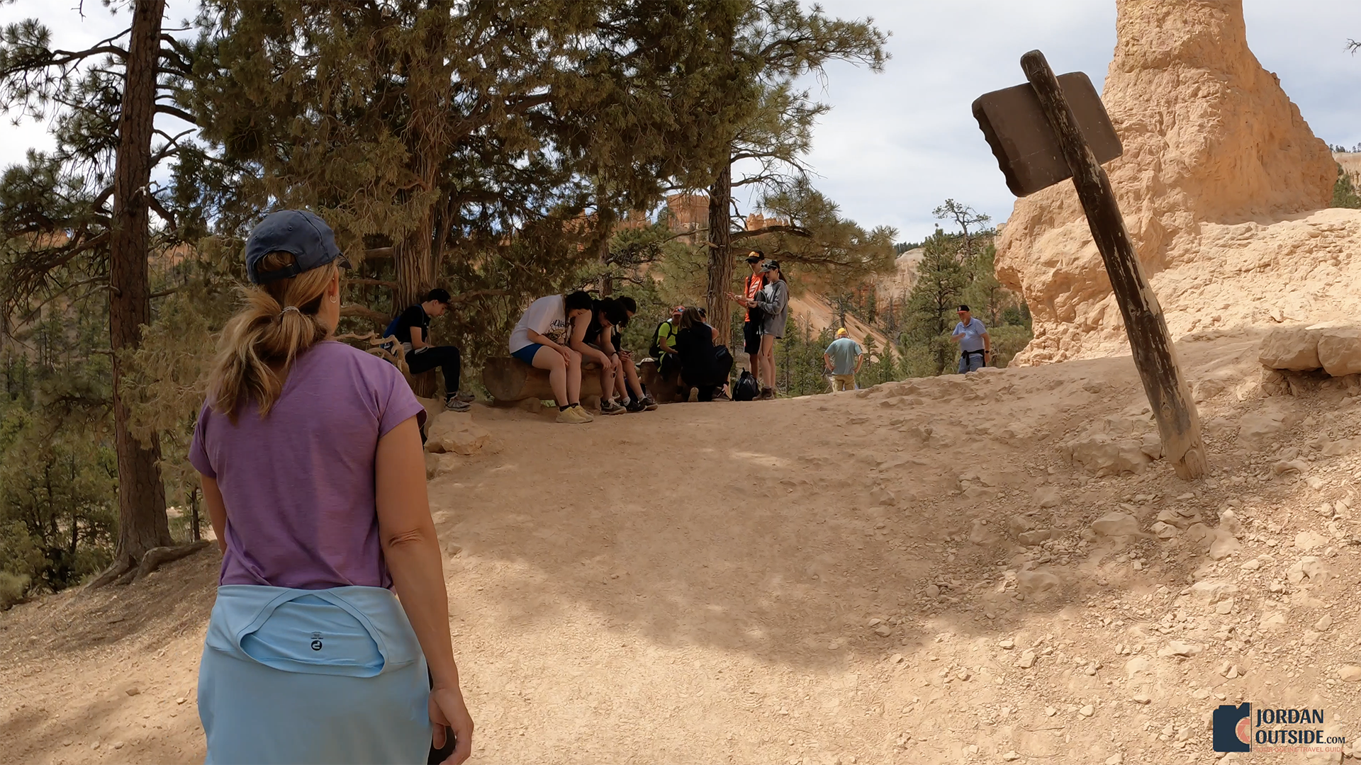You'll reach a part of the trail that has a sign for a trail going to Bryce Point, which is a 1 mile hike up.